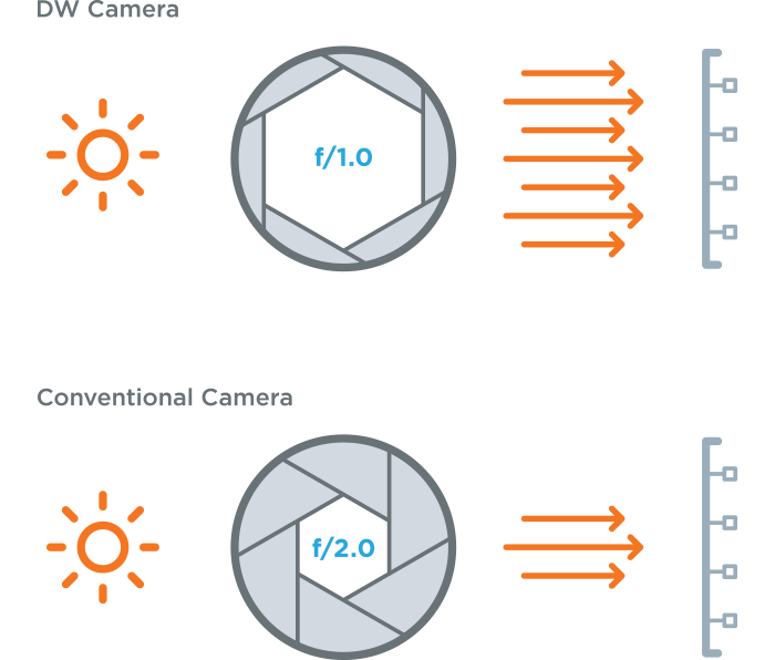 Use DW’s exclusive noise reduction technology to produce clearer color and monochromatic video in low-light without adding visual lag or ghost effects.